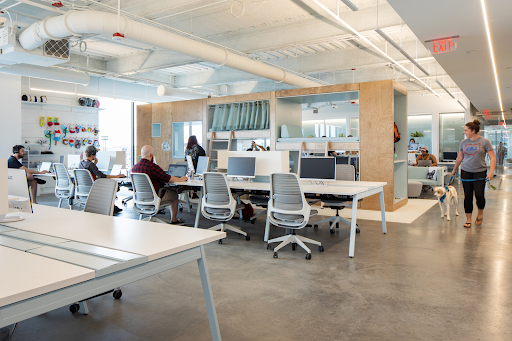 This office (Bark pet supply company) was designed to be pet friendly and allow their employees to bring pets in